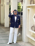 و ترکیب همیشه جذاب سورمه ای و سفید شد یک کت شیک ک هم میتونی اسپورت استایلش کنی هم رسمی بنظر من ک سورمه ای کتار سفید معرکس کت ستاره متریال کت کرپ لانوین قد کت از ۶۰تا ۸۰موجوده (قد کت تن مدل۷۰) کت ۱۲۹۰ (ستاره ها و جیب روی سینه امکان حذف شدن دارن) . شلوار کرپ باربی سایزبندی کت و شلوار از ۳۶تا۴۸موجود فروش حضوری و آنلاین مغازه:مشهد،پروما،طبقه دو ،پلاک ۲۷۳ و واتساپ #کتمشکی#کت_اسپرت#شلوارسفید #کتشلوارمجلسی#مانتو #کتشلواراسپرت#کت_سورمه_ای