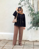 ترکیب خاص و جذاب مشکی با موکا شد یک کت مشکی ک هم میتونی اسپورت استایلش کنی هم رسمی رو دوزی های خاص و جذابشو ببین ک با شلوار ست شده دکمه ها و سگک روی جیب فلزی ترک کت موکا متریال کت کرپ کره ای قد کت از ۶۰تا ۸۰موجوده (قد کت تن مدل۶۵) کت ۱۲۹۰ شلوار کرپ تویست سایزبندی کت و شلوار از ۳۶تا۴۸موجود فروش حضوری و آنلاین مغازه:مشهد،پروما،طبقه دو ،پلاک ۲۷۳ و واتساپ #کتمشکی#کت_اسپرت#شلوار #کتشلوارمجلسی#مانتو #کتشلوارمشکی