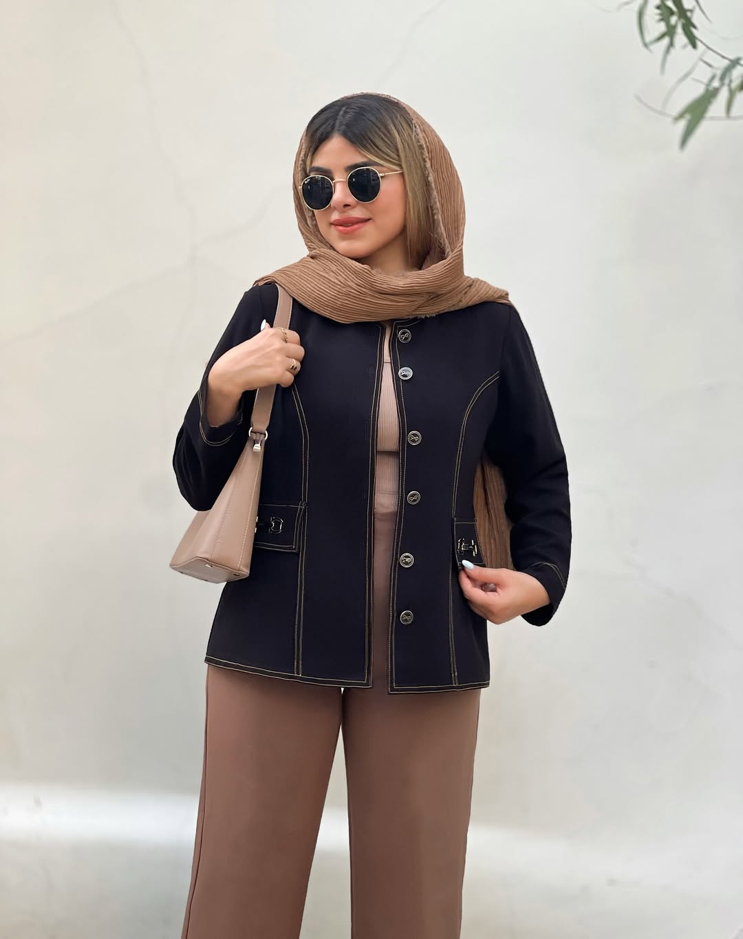 ترکیب خاص و جذاب مشکی با موکا شد یک کت مشکی ک هم میتونی اسپورت استایلش کنی هم رسمی رو دوزی های خاص و جذابشو ببین ک با شلوار ست شده دکمه ها و سگک روی جیب فلزی ترک کت موکا متریال کت کرپ کره ای قد کت از ۶۰تا ۸۰موجوده (قد کت تن مدل۶۵) کت ۱۲۹۰ شلوار کرپ تویست سایزبندی کت و شلوار از ۳۶تا۴۸موجود فروش حضوری و آنلاین مغازه:مشهد،پروما،طبقه دو ،پلاک ۲۷۳ و واتساپ #کتمشکی#کت_اسپرت#شلوار #کتشلوارمجلسی#مانتو #کتشلوارمشکی