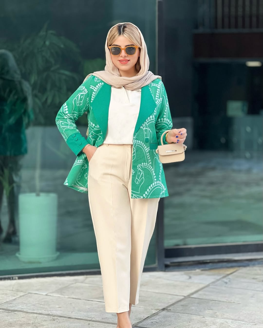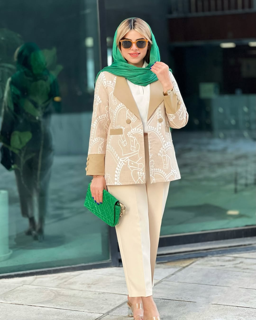 کالکشن عیدانه کت هورس با پترن پرطرفدار اسب در دو رنگ سبز و کرم جنس ژاکارد لینن مناسب تابستان و بهار قابل ست شدن با شلوار جین و پارچه ای و استایل های اسپرت و رسمی دخترونه و زنونه کت horse متریال:ژاکارد بامبو تابستانه سایزبندی موجود قد کت از۶۰تا۸۰ قابل رنگبندی:کرم ،سبز . شلوار نباتی کُپ راسته قد۹۰ متریال کرپ دبل ۷۳۰ فروش انلاین و حضوری ادرس فروشگاه:مشهد ،پاساژ پروما،طبقه دو،پلاک ۲۷۳ ثبت انلاین و واتساپ ۰۹۱۵۵۳۰۷۱۴۴ . . . . . #مانتوکتی #مانتوشیک#مانتوزنانه #مانتوعید #ست#شلوار#شلوار_زنانه #مخمل_سوزندوزی #مانتومشکی #استایل_بهاری