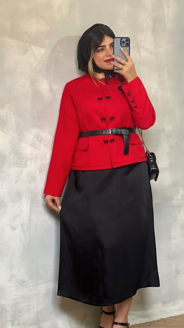 ست یلدا شامل کت کرپ دبل، دامن کرپ ساتن و شلوار کرپ باربی با قابلیت تغییر قد برای شما.